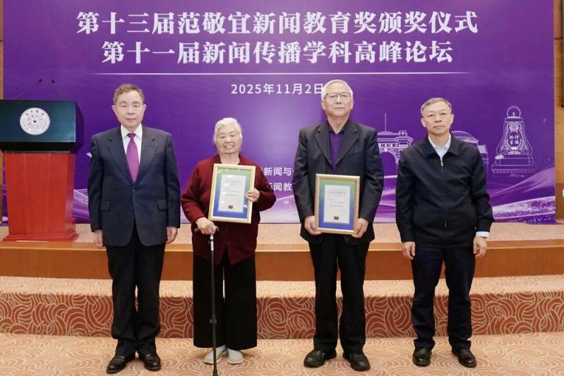 ▲朱羽君教授荣获范敬宜新闻教育良师奖