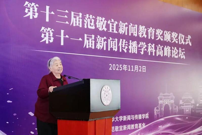 11月2日下午,第十三届范敬宜新闻教育奖颁奖典礼在清华大学中央主楼举行。十二届全国人大教科文卫委员会主任委员、原国家新闻出版总署署长柳斌杰,人民日报社编委委员、海外版编辑部总编辑陈贽,清华大学党委常务副书记向波涛,中国记协党组成员、书记处书记殷陆君,中国外文局副局长于运全等出席颁奖仪式。电视学院朱羽君教授荣获新闻教育良师奖。