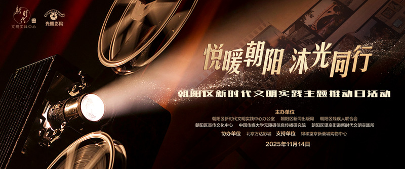 2025年11月14日,“悦暖朝阳 沐光同行”朝阳区新时代文明实践主题推动日活动在新荟城万达影城成功举办。本次活动积极响应中宣部文明实践局“光明影院”无障碍电影公益项目拓展推进会有关精神,由朝阳区新时代文明实践中心办公室、朝阳区宣传文化中心联合朝阳区新闻出版局、朝阳区残疾人联合会、中国传媒大学无障碍信息传播研究院、望京街道新时代文明实践所等单位共同主办,是朝阳区“政府引导—企业协同—社会参与”文明实践模式的生动实践。