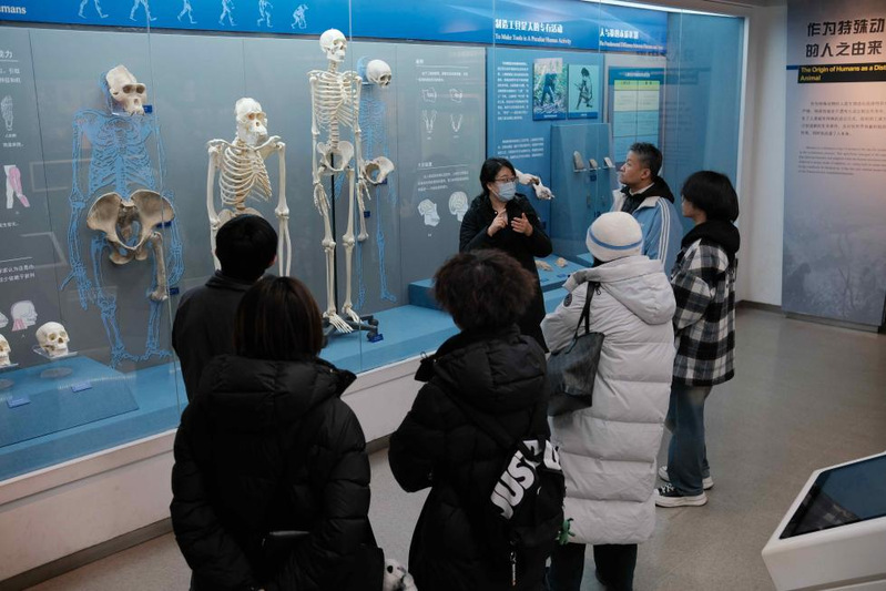 国家自然博物馆信息中心的席悦老师接待了师生团队。她带领大家简要参观了博物馆的核心展区,结合馆藏文物背后的历史故事,为同学们讲解自然资料保护与传播的重要意义。在随后的交流中,席老师与同学们展开自然亲切的互动,详细介绍了“自然拾光”项目的传播目标与内容需求,并针对作品的叙事逻辑、视觉呈现等方面提出优化建议,为同学们后续完善作品提供了重要参考。